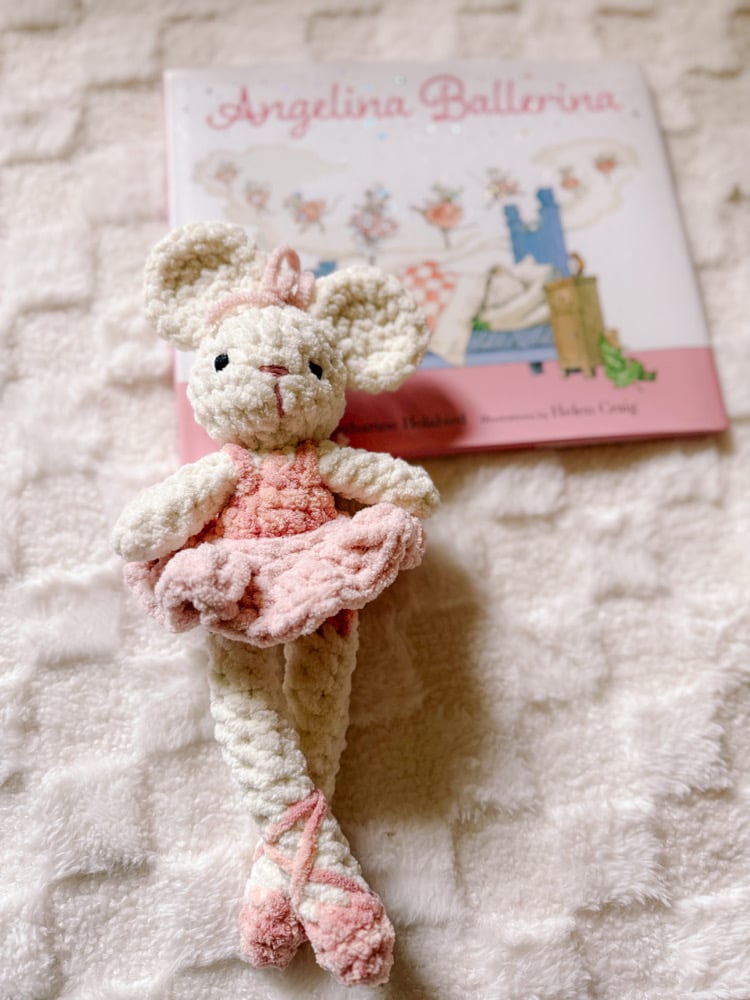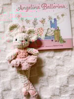 Inspired by the energetic Angelina from Katharine Holabird‘s children’s book ‘Angelina Ballerina’ this sweet mouse doll features the classic pink bodysuit, ballet slipper with embroidered laces, a little pink bow and removeable tutu.