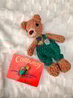 This precious bear is made with a stuffed head and unstuffed body perfect for snuggling close or hanging out under a little one's arm. Featuring embroidered eyes and a crocheted version of Corduroy's signature button, making it a great gift for all ages!